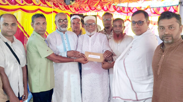 পরে সনাতন ধর্মাবলম্বী শারদীয় শুভেচ্ছা বিনিময় করে পূজা মণ্ডপে আর্থিক অনুদান প্রদান করেন।