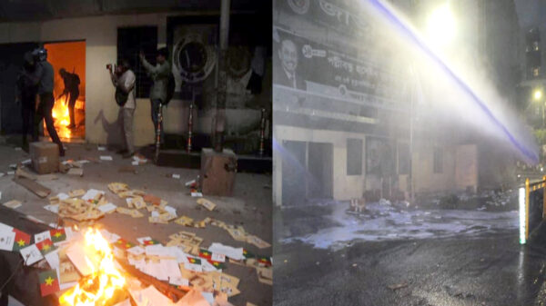 অল নিউজ এজেন্সী ডেস্ক : রাজধানীর কাকরাইল এলাকায় জাতীয় পার্টির অফিসে ভাঙচুর ও অগ্নিসংযোগের ঘটনা ঘটেছে। পুলিশের সঙ্গে ধাওয়া পাল্টা ধাওয়ার ঘটনা ঘটে। পরিস্থিতি নিয়ন্ত্রণে আনতে পুলিশ লাঠিচার্জ, সাউন্ড গ্রেনেড বিস্তারিত